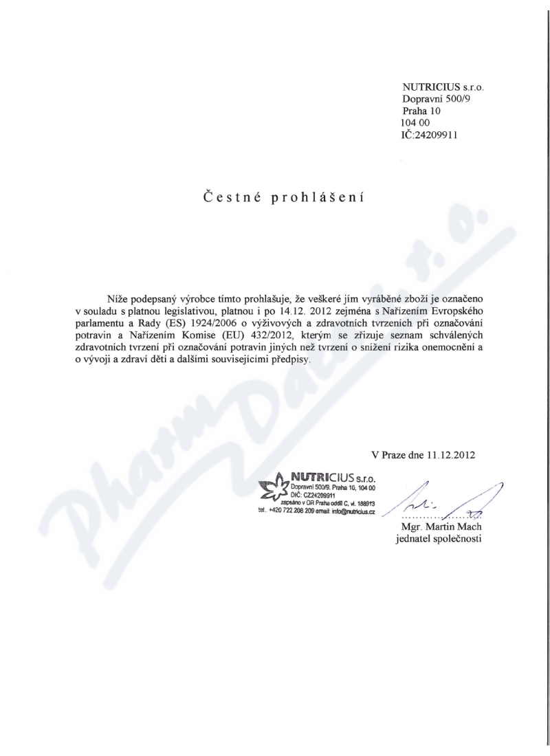 | Výrobca: | NUTRICIUS s.r.o. | |