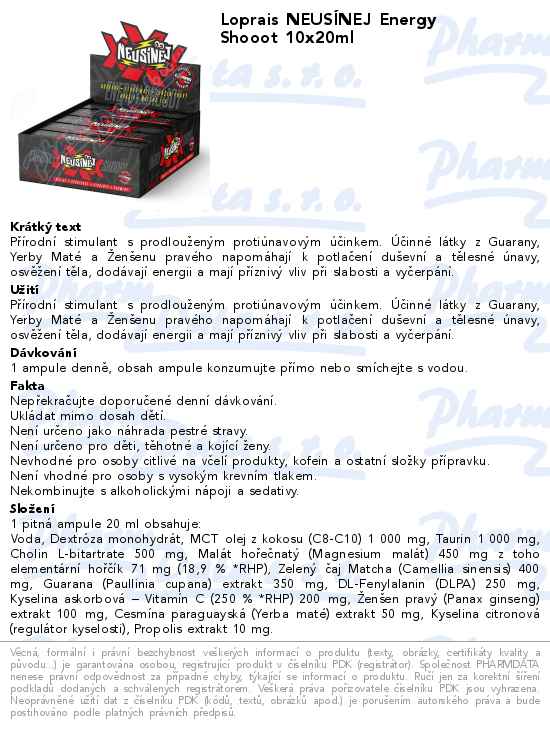 Upozornění: Nepřekračujte doporučené denní dávkování. Ukládat mimo dosah dětí! Není určeno jako náhrada pestré stravy. Není určeno pro děti, těhotné a kojící ženy. Nevhodné pro osoby citlivé na včelí produkty, kofein a ostatní složky přípravku. Není vhodné pro osoby s vysokým krevním tlakem. Nekombinujte s alkoholickými nápoji a sedativy! Uchovávejte při teplotě 3-25°C. Chraňte před světlem a mrazem.