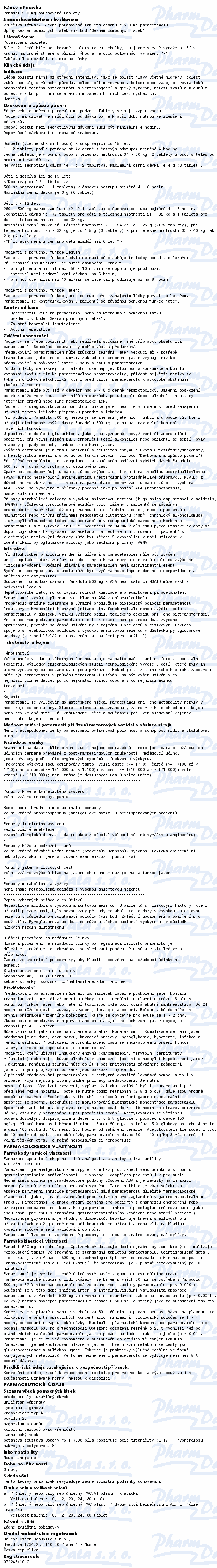 | ATC: | NERVOVÝ SYSTÉM / ANALGETIKA / JINÁ ANALGETIKA A ANTIPYRETIKA / ANILIDY / PARACETAMOL | |