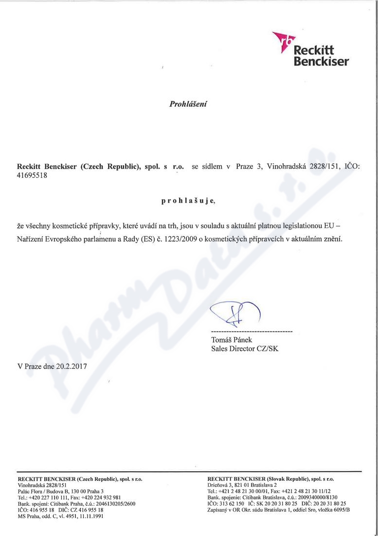 | Výrobca: | Reckitt Benckiser (Czech Republic), spol. s r.o. | |