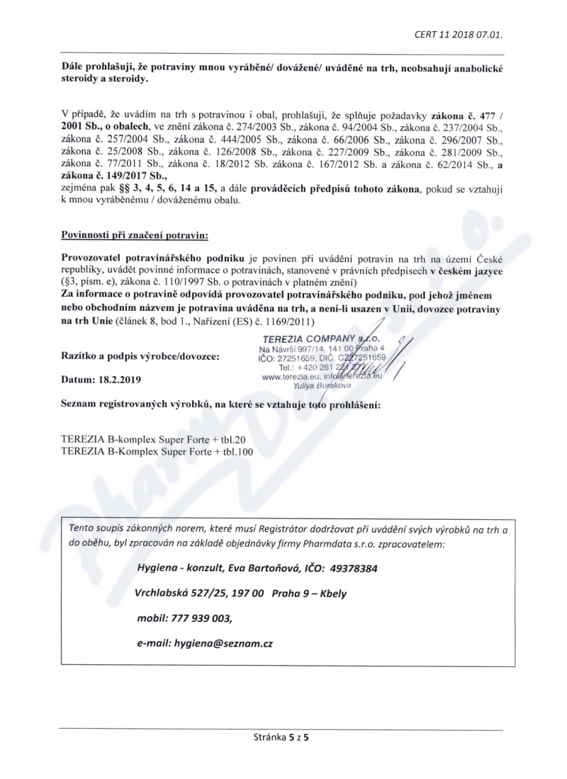 | Výrobca: | TEREZIA COMPANY s.r.o. | |