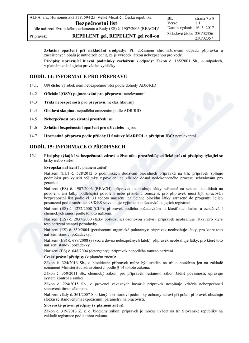| Výrobca: | ALPA, a.s. | |