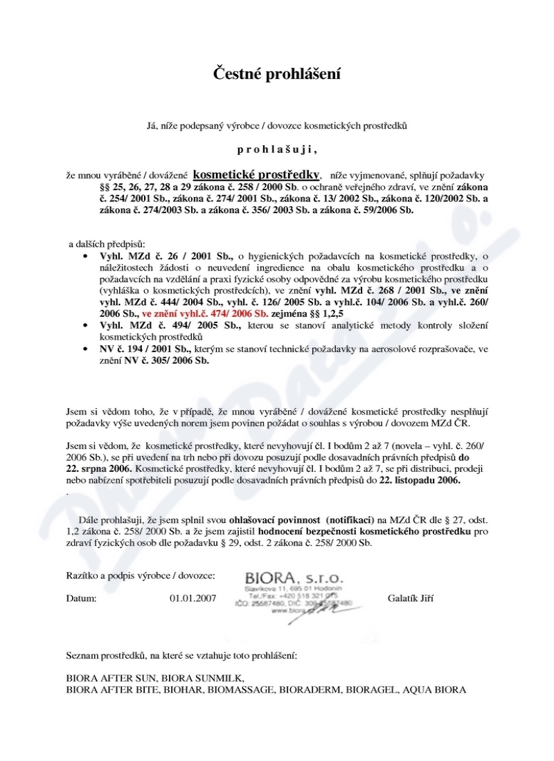 | Výrobca: | BIORA | |