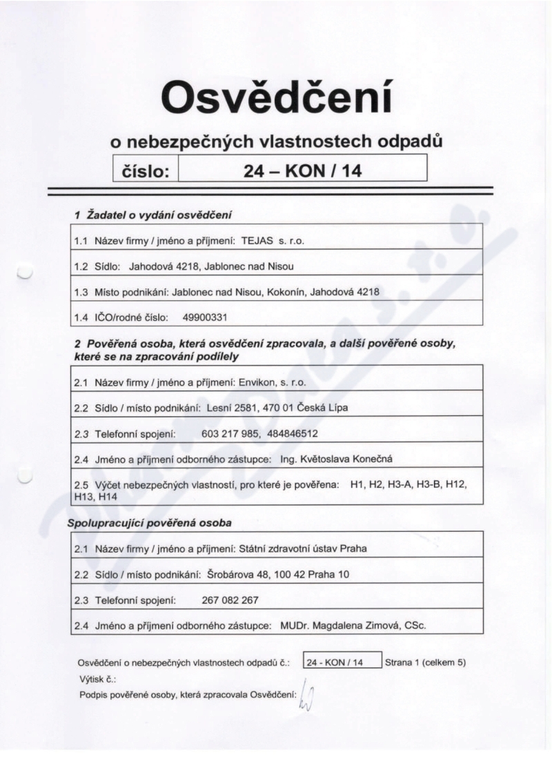 | Výrobca: | TEJAS | |