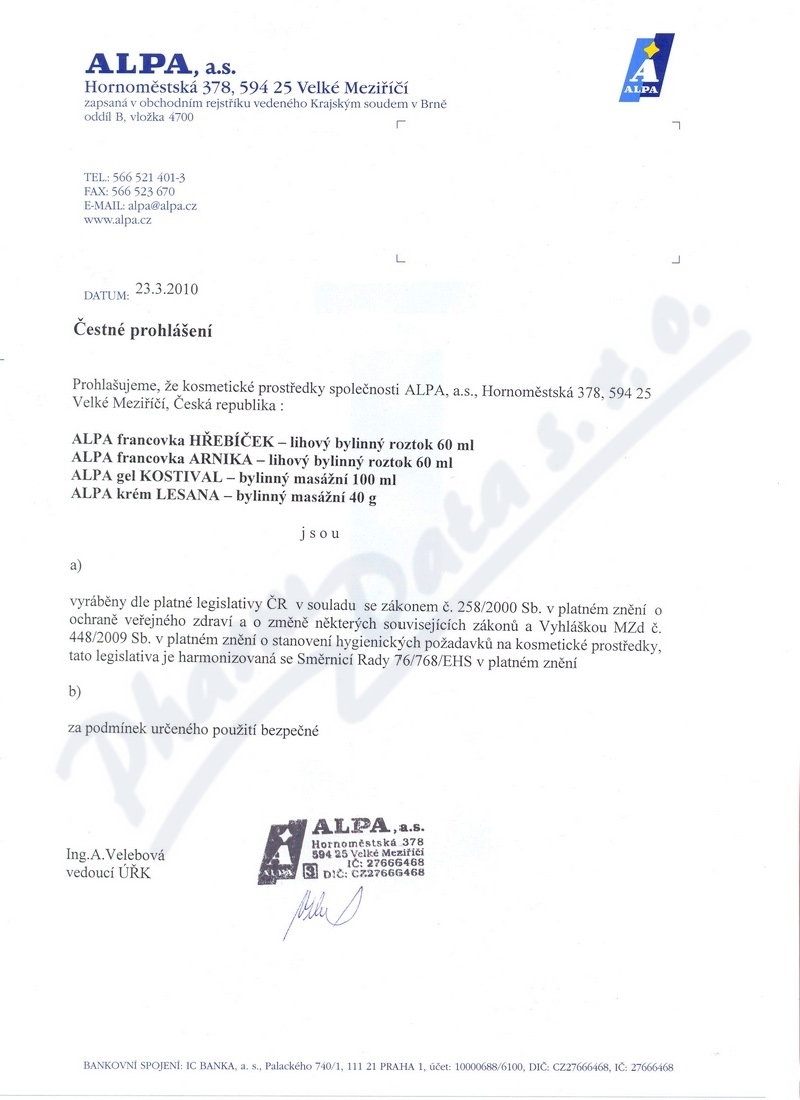 | Výrobca: | ALPA | |