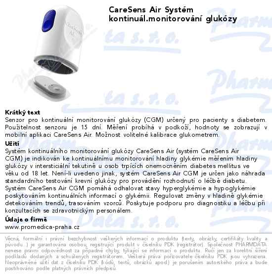 [2] Senzor CareSens Air by neměly používat: těhotné nebo kojící ženy, osoby mladší 18 let a osoby podstupující dialýzu.